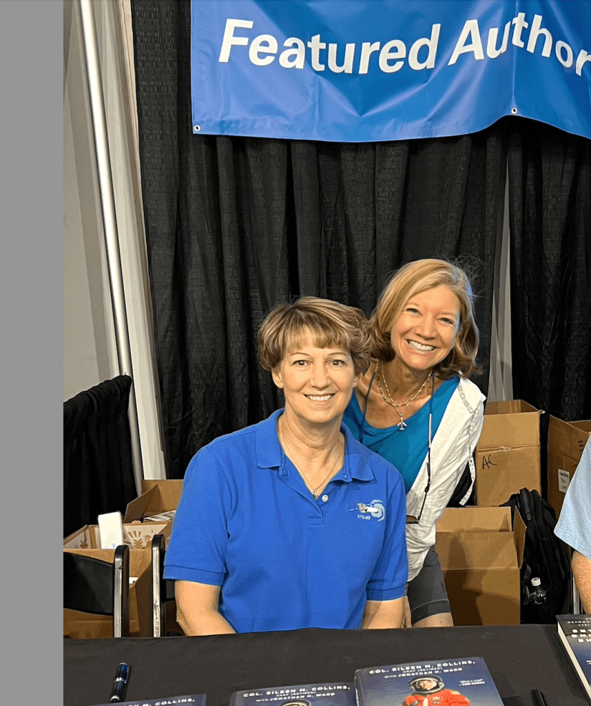 Sharing the Authors Corner at the EAA Oshkosh Airshow with NASA Astronaut and first female Space Shuttle Mission commander, Colonel Eileen Collins.